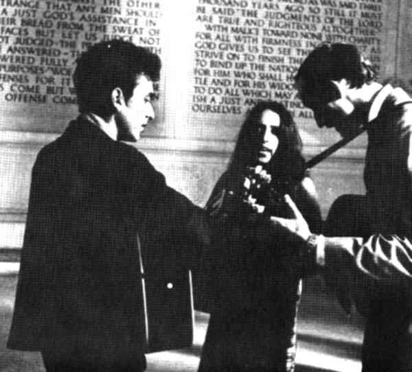 - With Joan Baez and Paul Stookey, Lincoln Memorial, 1963. - Photographer unknown.